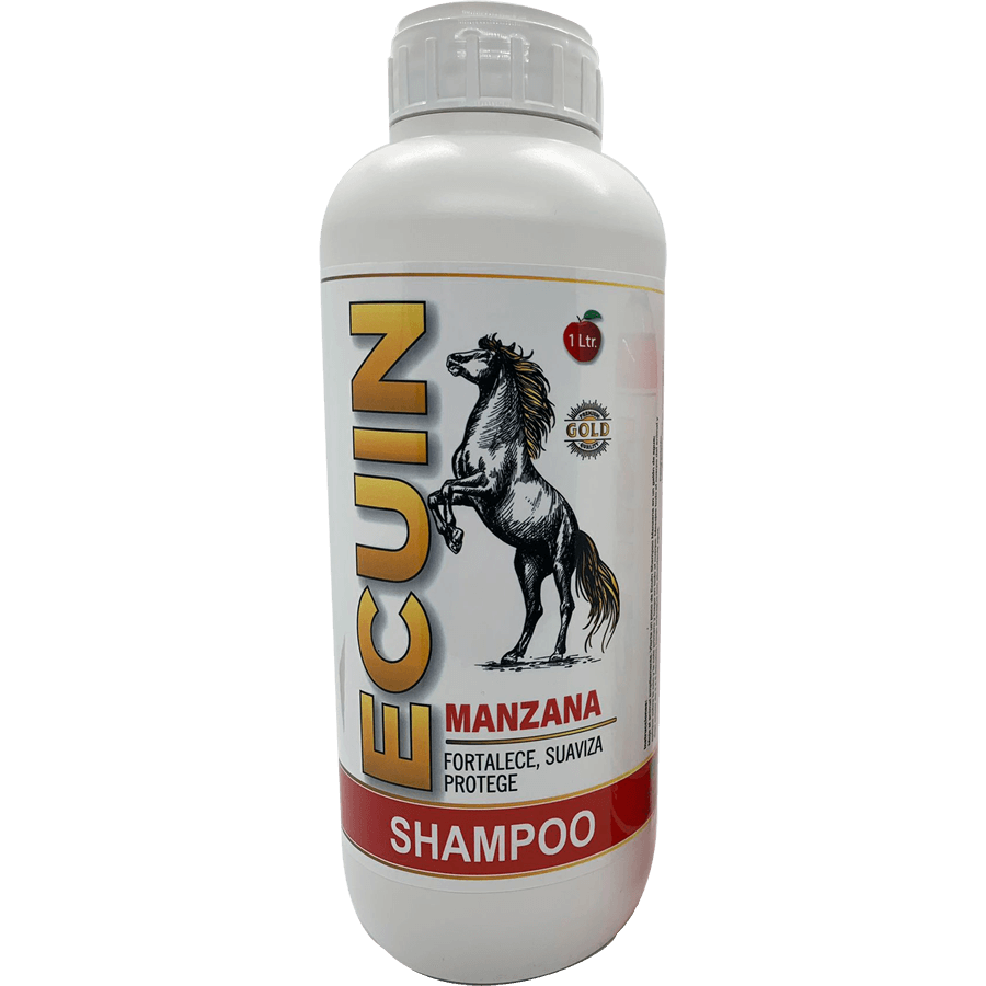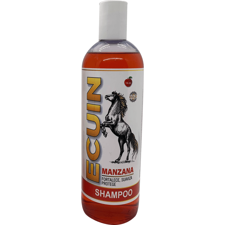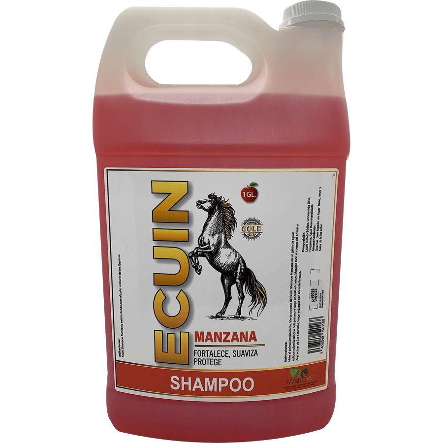 Moje el animal ampliamente. Vierta un poco de ECUIN Shampoo Manzana en un galón de agua; aplique sobre la crin y la cola primero y luego en todo el cuerpo. Masajee todo el cuerpo del animal y deje actuar de 3 a 5 minutos, luego enjuague con abundante agua.